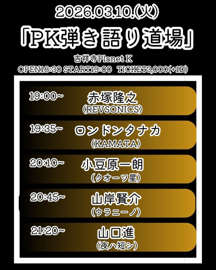 2026.3.10 Planet K Presents. 「PK弾き語り道場」
