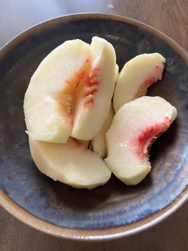 作詞をお手伝いしているクライアント様から桃が届いた。